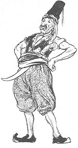 The Dews were obliged to carry their water from a long distance, and this duty was performed in turn by each of their number. Being of gigantic stature and strength, they were of course able to carry a quantity impossible for a mere mortal. On the following day one of the Dews accosted Mustafa: "It is your turn to fetch the water, and we are sorry to say the well is far away." Being afraid of the hero, the Dews naturally addressed him somewhat apologetically. Mustafa reflected, and then asked for a rope. It was given him, and he proceeded with it to the well. The Dews, full of curiosity to know what he intended to do with the rope, looked on from a distance, and saw him attach it to the stonework of the well. Astonished, they ran up and shouted to him to know what he was about. "Oh," he answered, "I am only going to put the well on my back and bring it home, so that none of us need go so far for water again!" They begged him for Allah's sake to desist, and he promised to do so on the understanding that they would not trouble him again with the duty of water-carrying.