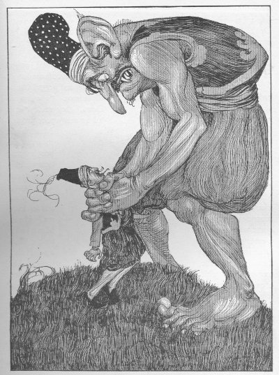 The woman followed this advice, and on the first opportunity that offered, she left her husband alone in the darkness. The man cried out in his terror until at last he fell asleep where he waited. At daybreak he awoke, and went angrily into the house.