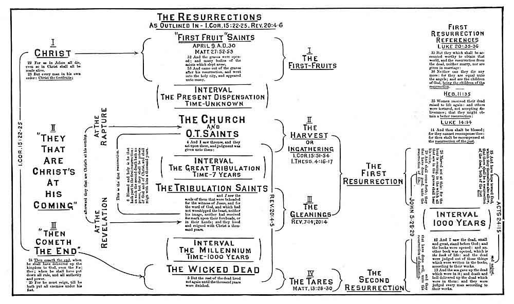 out before "The Tribulation," and are the "Harvest" of which Christ and those who rose at the time of His Resurrection were the "First Fruits." See the "Chart on ."