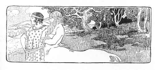 So he drew Jason in, whether he would or not, and spoke to him so lovingly and feasted him so well, that Jason's anger passed; and after supper his three cousins came into the hall, and Jason thought that he should like well enough to have one of them for his wife.