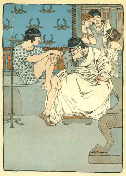 Then the old man looked back to his companions; and one sighed, and another smiled; at last he said: "I will tell you, lest you rush upon your ruin unawares. The oracle in Delphi has said, that a man wearing one sandal should take the kingdom from Pelias, and keep it for himself. Therefore beware how you go up to his palace, for he is the fiercest and most cunning of all kings."