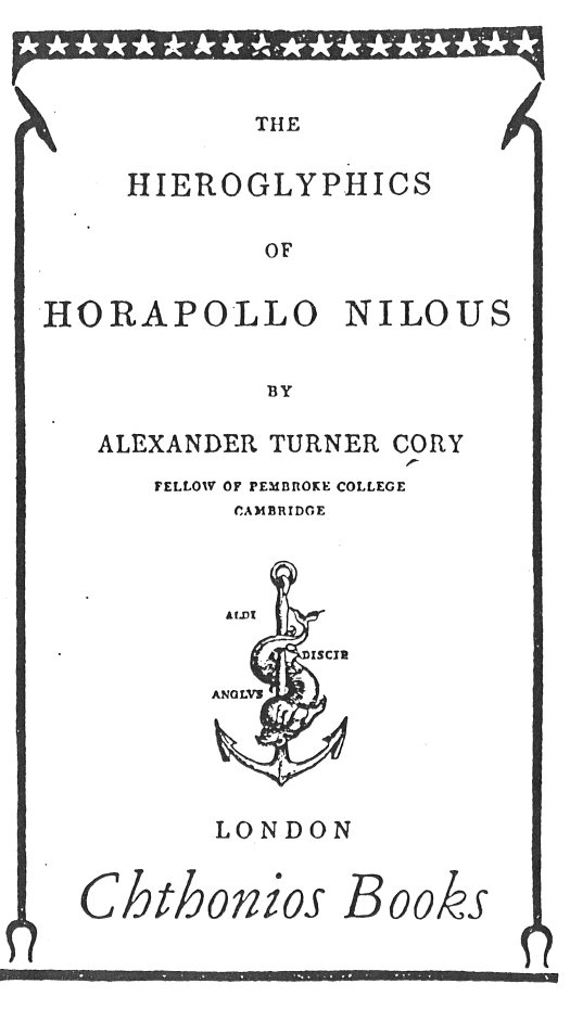 Hieroglyphics of Horapollo, tr. Alexander Turner Cory, [1840], at sacred-texts.com