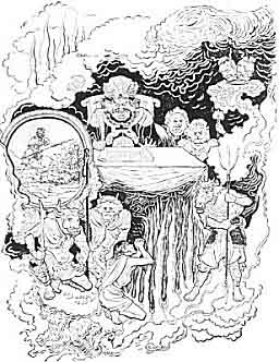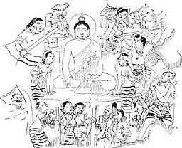 (Reproduced from a colored Japanese illustration in Karma.)