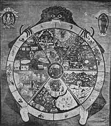 A TIBETAN WHEEL OF LIFE. (Reproduced from Bastian.)
