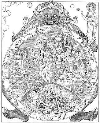 The wheel of life as now frequently pictured in Buddhist temples of Japan can, in its wanderings from India through Tibet and China, be traced back to a remote antiquity,