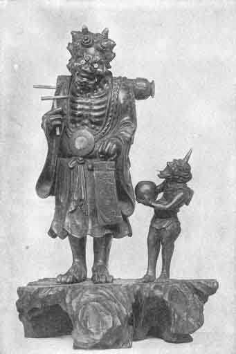 THE DEMON OF THUNDER. A Japanese temple statue.