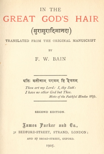 In the Great God's Hair, by F. W. Bain, [1905], at sacred-texts.com