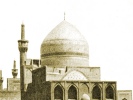 To complete my description of this court, there are two unrivalled minarets which are also cased in gold. Indeed, when the pilgrim stands where he can see the Golden Porch, the minarets, and the dome, he has no breath left in him; and it was only at my second visit that I noticed that round the dome were two inscriptions by Shah Abbas and Shah Suliman respectively. The Safavi dynasty is too famous to need praise from me. As they say, "Our enduring record is engraved in the history of the world."