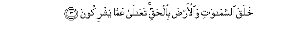 3. Khalaqa alssamawati waal-arda bialhaqqi taAAala AAamma yushrikoona