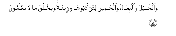 8. Waalkhayla waalbighala waalhameera litarkabooha wazeenatan wayakhluqu ma la taAAlamoona