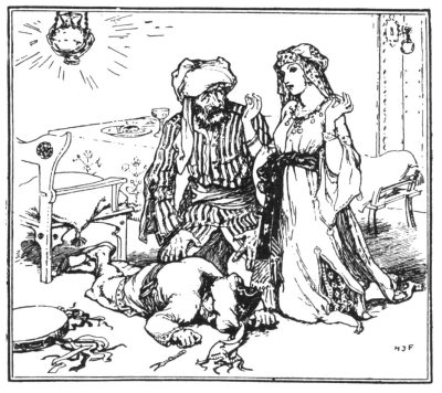 But his wife, who had twice his brains, suddenly exclaimed, "I have thought of something! Let us carry the body on the roof of the house and lower it down the chimney of our neighbour the Mussulman." Now this Mussulman was employed by the Sultan, and furnished his table with oil and butter. Part of his house was occupied by a great storeroom, where rats and mice held high revel.