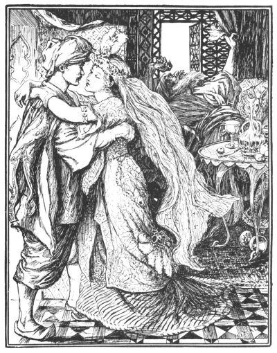 "Fear nothing," Aladdin said to her; "you are my wife, promised to me by your unjust father, and no harm shall come to you."