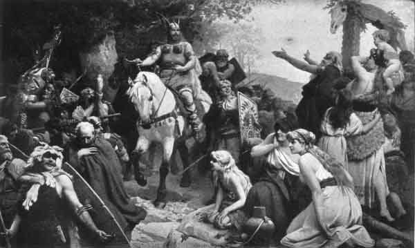 RETURN OF VICTORIOUS TEUTONS<br> <i>From the painting by P. Thumann. By permission of Franz Hanfstaengl</i>