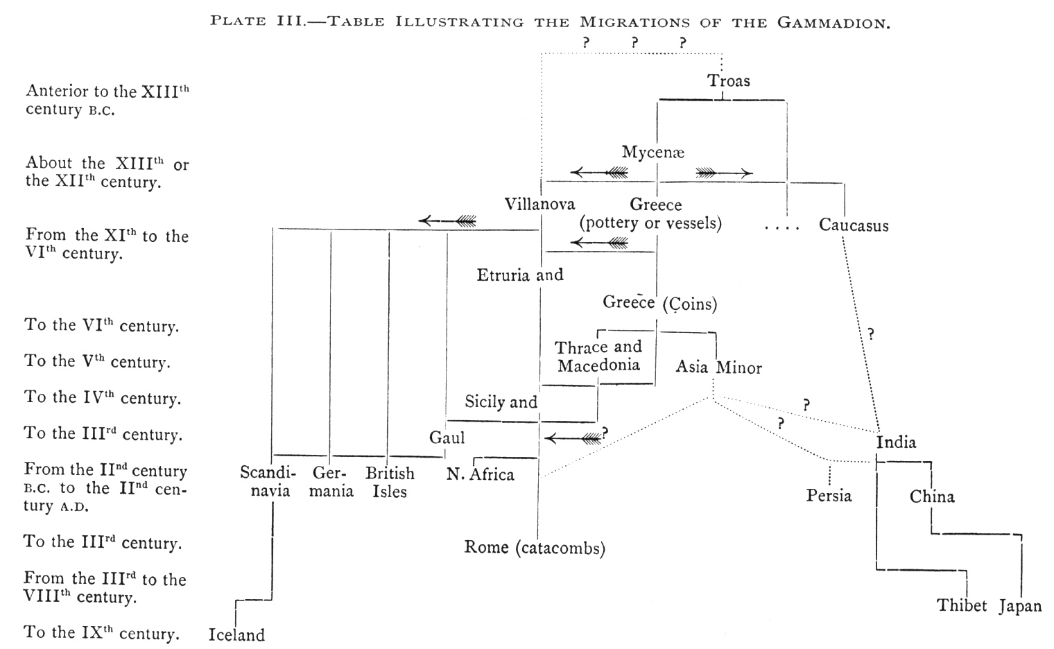 Plate III.—Table Illustrating the Migrations of the Gammadion