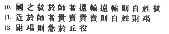 10. Poverty of the State exchequer causes an army to be maintained by contributions from a distance. Contributing to maintain an army at a distance causes the people to be impoverished. 1