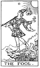 [paragraph continues] A proverb says, that children and fools tell the truth. Taken as a whole, the card signifies that which will prove to contain more truth than appears; that which cannot be helped; those who are unconscious (of certain things, e.g.,) or unreasonable or foolish, disregarding logical propositions and actions. Also that part of our surroundings over which we have no control or which we do not master; that which we have to obey or which we ignore.