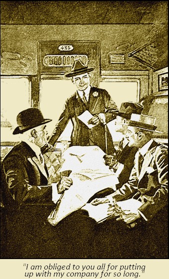 “Pratt,” he said, “am I to understand that the greeting which you offered to the occupants of this [Pg 8]carriage, when you entered, was intended to include me?”