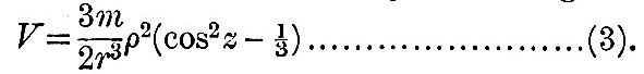 The first term of (5) is the potential of the globe, the second that of the disturbing force, and the third the potential due to departure from sphericity.