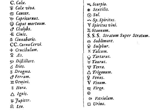 Alchemical Symbols from a work Athanasius Kircher