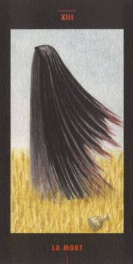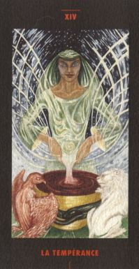 to create a living museum of collaborative arts projects, rooted in the spiritual and cultural history of the mediterranean, and dedicated to the myth of Lilith and her children, the lilim. Rossetta Woolf was one of the founding artists of this group and her watercolour paintings were the basis for this tarot. Her artwork though intensely symbolic uses a subtle pallette of soft colours and the underlying drawing is superb. The deck is mentioned in Kaplan IV page 25-26, where it is called the Cathar Tarot. I have obtained the final few remaining copies for the Art Tarot series (I have about 40 to sell). These are the original 1994 printed copies, which I have boxed up in my usual strong lidded box. I think it is quite a treasure, sadly almost completely unknown. Hopefully, its inclusion in the Art Tarot series will bring it to the attention of the tarot community. It certainly deserves recognition as a fine art tarot.22 Major arcana deck. Card size 6.25 by 3.25 inches (160 by 83mm). Signed by the inspirer and creator of the deck, 'Aleph'. Sorry this deck has now sold out and is no longer available. ![]()