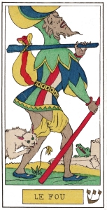 The tarot deck created by Oswald Wirth in 1889 was the first esoteric tarot to be published. Wirth had taken the designs from the familiar Marseilles decks and redrawn these so they expressed his esoteric ideas. He especially made the number of objects in each image important - thus five gold and five silver coins fall from the pockets of Le Pendu - and there are many similar kabbalistic resonances to the symbolism. The 1889 deck was printed as line engravings then coloured by hand, as was usual with playing cards at that time when colour printing had not fully developed. The colouring of the cards was often messy, with the colour overflowing the lines and often not entirely filling the areas, because the colour was applied using stencils and relatively unskilled labour. I have cleaned up the images, sensitively correcting these flaws, to produce a deck that reflected Wirth's original conception. Limited Edition of 100 copies. Sorry this has now sold out.