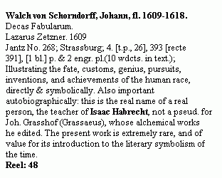 The front of the tray depicts a typical birth scene: the mother is attended by maidservants who bring refreshments, other women care for the newborn, and well-wishers arrive at the door. The reverse of the tray - which caught my attention - is painted with the image of a boy, wearing a coral amulet and holding a hobby horse and pinwheel, seated on a rock in the middle of a river or lake, urinating streams of silver and gold. The coral amulet, which initially caught my eye, was a common apotropaic device, particularly with respect to childbirth and maternal/infant health. It appears in numerous Renaissance paintings of the Virgin and Child. The inscription around the perimeter of the tray, which is partially effaced, reads: "FACCIA IDDIO SANA OGNI DONNA CHFFIGLIA EPADRI LORO . . . RO . . . ERNATO SIA SANZA NOIA ORICHDIA * ISONO * VNBANBOLIN * CHESUL [ROCCIA/] DIMORO * FO * LAPISCIA* DARIENT [O] * EDORO," which is translated as: "May God grant health to every woman who gives birth and to their father . . . may [the child] be born without fatigue or peril. I am an infant who lives on a [rock?] and I make urine of silver and gold." (The Metropolitan Museum of Art Bulletin, Summer 1980.) Various authors have suggested that the silver and gold urine might signify "future prosperity," "a pun," and an allusion to the goldsmithing occupation of the birth family. It is believed that the damaged coat of arms on the tray may have belonged to the Montauri family of Siena. There is also some speculation that the tray was commissioned in celebration of the birth of Paolo di Tommaso Montauri, who later became a goldsmith and served on the board of governors of the Bicherna (Exchequer) in 1480. His father, Tommaso di Paolo Montauri also had been a prominent goldsmith. (Kanter, Lawrence et al. Painting and Illumination in Early Renaissance Florence 1300-1450, New York, Harry N. Abrams, 1994.) I am wondering whether the birth-tray child, who 'lives on a rock' and makes 'urine of silver and gold,' may point to an alchemical significance. Can anyone shed light on possible alchemical connections with respect to the artist (Bartolomeo di Fruosino) or the Montauri family? Are there similar, posibly related, images in "civilian" art? I would welcome any thoughts on the iconography. Thank you. Janet Muff Subject: von Bernus From: Eugene Beshenkovsky Date: Mon, 15 Mar 2004 Dear Rafal, I checked this catalogue several years ago. It is a regular catalogue of library holdings. Useful, but no match to Ferguson or Duveen or Bolton. There are few items that might be of interest to you like: "Lucerna Salis Philosophorum", Sendivogius' Chemische Schriften, and his Briefe. Best, Eugene Beshenkovsky Subject: Maier's 'Arcana Arcanissima' From: Aaron Crim Date: Mon, 15 Mar 2004 This is probably a very dumb question, but has this work ever been translated into English? If so, is it readily available, or am I missing something? Thanks in advance, Aaron Subject: A Giorgione's painting reading From: Janet Muff Date: Tue, 16 Mar 2004 Dear Marisa Addomine: I am not sure whether he is correct or not, but Antoine Faivre discusses Giorgione's "The Three Philosophers" (in his book The Eternal Hermes - From Greek God to Alchemical Magus) in conjunction with a discussion of the engraving of Hermes Trismegistus from the Siena Cathedral, attributed to Giovanni di Maestro Stephano.