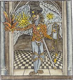 EMB18. Woodcut 'Chronos as an Angel' from Stephen Hawes, The Pastyme of Pleasure, 1509.