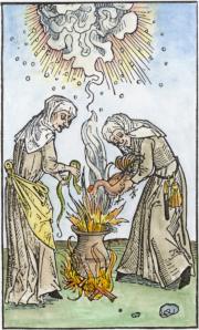 EMB20. Woodcut of two witches from Ulrich Molitor, 1508.