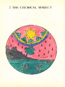 That I may at length conclude in one word this golden chapter, I do plainly with a constant protestation affirm the more sound Philosophers to have nominated it the Star of the Sun, the Ens of the Moon (Sun and Mercury). Know further, that although the subject of health and riches be the same, and that we will handle them both in these commentaries, yet professedly as to the sons of learning and men of understanding it may appear in this place, we will especially treat of the matter of Medicine, for it is our chief intention. But as yet you see Saturn in the ascendant, and all the planets accompanying him, but having the Sun and Moon under his feet, by which is signified that Saturn himself only doth contain in himself those two tinctures, sought by so many and found or known to few. But that a little solar star appears in the Moon, and a little lunar star in the Sun, doth not want a Mystery, for the Sun and Moon came forth of the one and same root, as may in a short space be occularly demonstrated by an ingenious Artificer, by the little white drops which afterwards become red is signified abundance of Tincture, lying hid especially in the body of Saturn. By the mountain out of which a flourishing tree doth appear, is very fitly signified that Saturn is not gotten elsewhere than in hilly places.