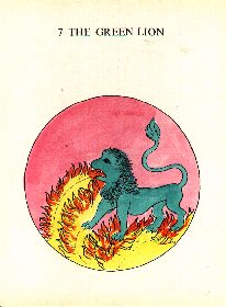 The Green Lion is that Philosophical Mercury so often spoken of in his first beginning, or flourishing, easily avoiding the fire, because it is not fixed, but being fixed it desires it, and expects it and rejoiceth in it. It is of a Cold and Airy nature, and out of it (as it is in the Rosary), God created all mines. Let it not therefore seem strange to anyone because it reduceth into and doth radically dissolve all metals into their first matter, when as out of him are all things, and in whose bosom are all the planets, they lie hid and are contained. Seeing therefore that some of them affecteth a sublime work to him and is a profitable spirit, and there is no thing in the world besides him, neither is there that may stand in his place, and is only profusive in the body that wants him (hence Rosary).
