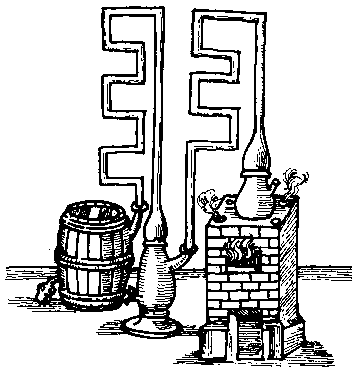 Now, this spirit contains in it a subtle ammoniac and essential sulphur inseparably conjoined which, indeed, are the life of the spirit, and may be separated from the mercurial or watery part thereof which, after separation of them, remains insipid, but yet of wonderful subtility. They may be separated thus: first, rectify the spirit as high as you can the ordinary way. Then rectify it once or twice in these following vessels.
