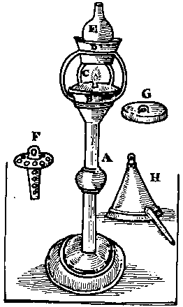 Now the manner of the using of them is this. You must first heat them very hot. Then put the noses thereof (which must have a very small hole in them, no bigger than that a pin's head may go in) into a vessel of cold water. They will presently suck in the water, of which then being full, turn the noses thereof towards the candle or fire which you would have blown.