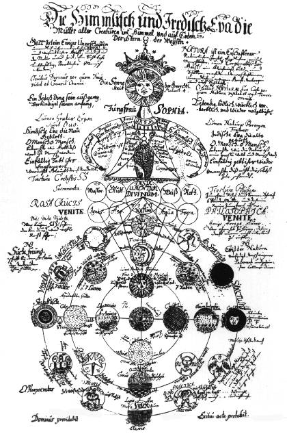 It is obviously impossible to describe all those differences here, as at least one version should be reproduced so that the readers could follow my explanations. In general the Wroclaw Ms seems to be more logical and consonant with the hermetic tradition. For example, on the plate mentioned above, in the central part, there are words, "Sulphur philosophorum" on the left and "Sal philosophorum" on the right. In both Sachse and Hall Mss they are quite prominently written above the lower section of symbols in small circles while in the Wroclaw Ms and in the Altona publication they are placed on top of the two circles closer to the center. The latter placing is obviously correct and in keeping with the symbolic content of the plate. Another example is from the plate "Virgin Sophia", where in the lower right hand corner there are two small circles, one of which contains a symbol similar to Dee's Monas and the other has a double-headed bird (Phoenix, as the text says), in the Hall Ms these symbols are in each other's position, though the texts describing them remain in the original place and thus the "Monas" symbol is described as Phoenix, while the bird is described as a divining rod. The same mistake is repeated once more on the same plate with the circles of "The Raven's Head" and "Incombustible Oil". All the errors of this and similar kinds can be found in all the Mss and the Altona printing but I have not found anything like that in the Wroclaw Ms, which seems to suggest that it may have been the original or a very early copy into which the mistakes had not yet crept in. There is however one point of special interest which confirms my hypothesis that this is the original of all the other D.O.M.A. texts. On the plate entitled "Of God and Nature" (pl. 10 in Hall) there is an inscription added in a different hand (i.e. later) in the lower left hand part. In the other versions (i.e. Hall Ms and Altona) this note is incorporated into the text and moved up to the middle part of the plate. Another note in a different hand, much later and in brown ink, is added in the lower left hand part of the "Figura Divina" plate. It is a reference to the work "Licht (?) der Natur" (I am not sure of the first word) by Anonimus von Schwarz" published in Frankfurt and Leipzig in 1706. As this note does not appear in Hall or in Altona, the Wroclaw Ms must have been copied by others between these two additions were made. Summing up, I suggest that the Wroclaw Ms of D.O.M.A. is the original of all the other texts and was produced in the second half of the 17th century (most probably around 1650).