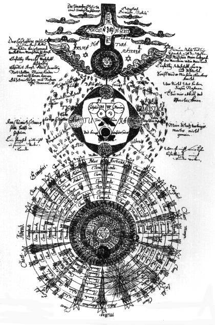 Now, the question arises who was its author or authors? To answer it is quite difficult as there is nothing in the text itself that would be of any help however, we can speculate that the D.O.M.A., manuscript from Wroclaw was produced in Silesia, i.e. that it was not brought there from some other part of Europe. If so, then we have a number of people connected with Rosicrucianism to take under consideration. First of all there is Jacob Boehme in Zgorzelec (Goerlitz) at the beginning of the 17th century. The influence of his thought on the D.O.M.A. is obvious in many fragments of the text though the diagrams are not similar to those in the Gichtel edition of his works. But, as M.P. Hall pointed out, Gichtel's illustrations are independent of Boehme's text and therefore the D.O.M.A. illustrations may have been inspired by Boehme in the same way. One of Boehme's friends and students was Abraham von Franckenberg, also from Silesia (actually he lived in Wroclaw), who was the first editor of the Teutonic Philosopher's writings. Von Franckenberg was actively interested in Rosicrucianism, which is confirmed by his extant letters which he exchanged with various people in all parts of Europe. He travelled to the towns where the Rosicrucian Order is said to have been active, especially Gdansk (Danzig), where he stayed on several occasions. Gdansk was the place of publication of several early Rosicrucian documents and replies to the Fama for example: De Fratribus Rosae Crucis by Henrico Neuhusio (Neuhaus). 1610 (?) and 1617 Echo der ... Fraternitet des Lobl. Ordens R.C. by Julius Sperber, 1615 and 1620, one of the most important and influential early Rosicrucian documents. Assertion oder Bestatigung der Fraternitet R.C., 1616. Exemplarischer Beweis, dass das in der Fama und Confession ..., 1616. Proeludium de castitate etc. Scriptum ad Ven. Fratres R.C., 1617. Schnelle Botschaft an die Philosophische Fraternitet vom R.C., by Valentin Tschirness, 1617, the same was published a year earlier in Goerlitz and thus shows the connection of Silesian and Gdansk Rosicrucian circles. Ohne die Reformation, 1618, an edition of Fama and Confessio. Pia et utilissima admonitio de Fratribus R.C. by Henrico Neuhusio, 1622 and 1628, apparently the same work as he first one above, which would mean it had four editions in Gdansk; it should be noted that it is against Rosicrucians. Gdansk was also an important centre of alchemical activities at the time, with such eminent practitioners as Alexander von Suchten (actually Zuchta, as he came from a Polish noble family). Von Frankenberg also mentioned Rosicrucians in his writings, one of which includes a complicated mandala-like illustration of a definitely Rosicrucian character [7]. He formed a group of students of Pansophia, which is the term earlier used in "the fourth manifesto" Speculum Sophicum Rhodo-Stauroticum. One of his students became famous as the mystical poet Angelus Silesius. Finally, one of the most important Rosicrucian works after the initial manifestos was Die wahrhafte und volkommene Bereitung des philosophischen Steins der Bruederschafft aus dem Orden des Gulden und Rosen Kreutzes by Sincerus Renatus, published in Wroclaw (again!) in 1710. The author's real name was Sigmund Richter and he lived in Hartmannsdorf near Kamienna Gora (Landeshut) in Silesia. It is generally believed that Richter described a real order and that his book is the missing link between the older Rosicrucians and those of the 18th century. If so, then it is quite possible that the Silesian order produced the D.O.M.A. text as an "A.B.C." for its neophytes. The influences of Boehme, von Franckenberg and the early Rosicrucian publications are all brought together in this document circa 1650. And there is one more influence, that of alchemy. It is usually overlooked that the only modern author quoted by name in the D.O.M.A. is the great Polish alchemist Michael Sendivogius, mentioned on the right of the plate "Of God and Nature" (plate 10 in Hall). All these influences add to the philosophical content of the D.O.M.A. but not to its way of presentation. This, I believe, can be traced to one of the early letters to the Rosicrucian Brotherhood which was published together with the Fama and Confessio (Cassel 1616 edition). The letter is entitled Sendschreiben mit kurtzern Philosophischen Discurs an die Gottweise Fraternitet des Loblichen Ordens des Rosen Creutzes. I have found a copy of it in the Poznan University Library bound together with Fama Remissa and the work by Andreas Libavius defending the Order and bearing the letters D.O.M.A. on the title page. The book is in leather (probably 17th century) and stamped with "R. C." (18th or even 19th century) on the first page. "The Short Philosophical Discourse" added to the letter seems to be very much in the character of the D.O.M.A. text and is similarly presented, though much shorter and without any diagrams. As it will not take much space, I enclose a verbatim translation in extenso: