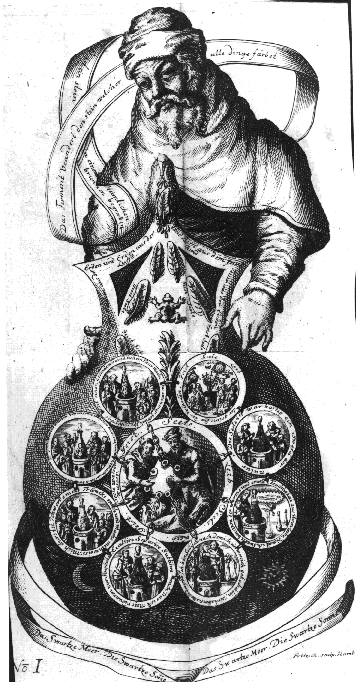Here is the last of the Red, and the beginning to put away the dead. The Elixir Vitae. Take the father that Phoebus so high That sit so high in majesty With his beams that shines so bright In all places wherever that he be For he is father to all things Maintainer of life to crop and root And causeth nature for to spring With the wife beginneth soothe For he is salve to every sore To bring about this prosperous work Take good heed unto this lore I say unto learned and unto clerk And Homogenie is my name Which God made with his own hand And Magnesia is my dame You shall verily understand. Now I shall here begin For to teach thee a ready way Or else little shall thou win Take good heed what I do say Divide thou Phoebus in many parts With his beams that be so bright And this with nature him convert The which is mirror of all light This Phoebus hath full many a name Which that is full hard to know And but thou take the very same The philosophers stone ye shall not know Therefore I counsel ere ye begin Know it well what it should be And that is thick make it thin For then it shall full well like thee Now understand what I mean And take good heed thereto Our work else shall little be seen And turn thee to much woe As I have said this our lore Many a name I wish he hath Some behind and some before As philosophers doth him give In the sea without lees Standeth the bird of Hermes Eating his wings variable And maketh himself yet full stable When all his feathers be from him gone He standeth still here as a stone Here is now both white and red And all so the stone to quicken the dead All and some without fable Both hard and soft and malleable Understand now well and right And thank you God of this sight The bird of Hermes is my name eating my wings to make me tame. The Red Sea. The Red Sol. The Red Elixir Vitae. Red Stone. White Stone. Elixir Vitae. Luna in Crescent. ![]() I shall you tell with plain declaration Where, how, and what is my generation Omogeni is my Father And Magnesia is my Mother And Azot truly is my Sister And Kibrick forsooth is my Brother The Serpent of Arabia is my name The which is leader of all this game That sometime was both wood and wild And now I am both meek and mild The Sun and the Moon with their might Have chastised me that was so light My wings that me brought Hither and thither where I thought Now with their might they down me pull, And bring me where they will The Blood of mine heart I wish Now causeth both joy and blisse And dissolveth the very Stone And knitteth him ere he have done Now maketh hard that was lix And causeth him to be fix Of my blood and water I wish Plenty in all the World there is It runneth in every place Who it findeth he hath grace In the World it runneth over all And goeth round as a ball But thou understand well this Of the worke thou shalt miss Therefore know ere thou begin What he is and all his kin Many a name he hath full sure And all is but one Nature Thou must part him in three And then knit him as the Trinity And make them all but one Lo here is the Philosophers Stone ![]() If you have problems understanding these alchemical texts, Adam McLean now provides a study course entitled How to read alchemical texts : a guide for the perplexed. |