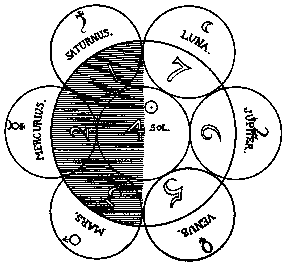 Mars: Fear, heat, therein consists the sensibilities. Mercury: Bitter, drawing and moving out of the harsh quality, which causes a sting within, and remains in that spirit, the existence of mobility. Saturn: Harsh, hard, cold, severe, sharp, sour, inclined to rudeness and earthliness, its desire consists out of these qualities. Sun: Fire or life, half in darkness, half in light, is the setting alight and the goal of separation. Moon: The being, made of of the forenemaed six spiritual qualities, in which they lie bodily and in readiness, as in their coffer. Jupiter: Is the power from the life of light, in it is fulfilled God's word of the cognition, sound, call and tone. Venus: Light, love, fire, which burns in the oil of Mercy, in which consists the heavenly life.