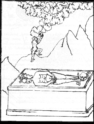 The manuscript 8° Chem 32, entitled Das Kunstbüchlein, in the Murhardsche Bibliotek in Kassel in Germany, is dated 1549, a year before the Rosarium philosophorum book was published. This 'little book of the art' [of alchemy] which was written by Caspar Hartung vom Hoff, contains 25 sketchy line drawings. Twelve of these show imagery which appeared in the woodcuts of the Rosarium. One cannot be entirely sure which came first as the Rosarium could have been written and illustrated a few years before 1550, and