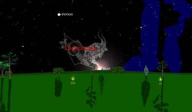 In the illustration here the sun has just set and the stars have just come out, and we can see that the sun is positioned on the front leg of the constellation Capricorn. This is where the sun was relative to the stars on December 22 around the year A.D. 1. In our present age you have to wait until January 18 to see this.
