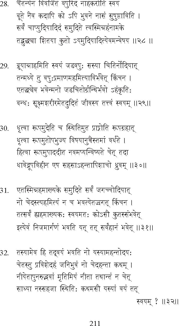 being an outcome of this ignorance, this great Event is also called the destruction or dissolution of the mind. Hence it is strictly true that for the Sage there is no mind nor body nor world. But that does not mean that body and mind are destroyed in the sense that other people will cease to see them; for them the Sage’s body and mind will continue to appear, and they would appear to be affected by events, and hence there can be a further history of the Sage. The Sage himself may seemingly be active in diverse ways, though these actions are not really his. Hence the course of events that occurred after this great Event — some of which are narrated here — do not really belong to the Sage; they do not affect him in any way.