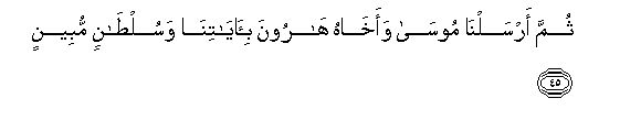 45. Thumma arsalna moosa waakhahu haroona bi-ayatina wasultanin mubeenin