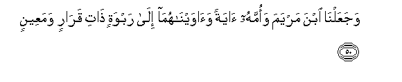 50. WajaAAalna ibna maryama waommahu ayatan waawaynahuma ila rabwatin thati qararin wamaAAeenin