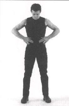 of the hips while the thumbs rest on the lower edge of the rib cage on