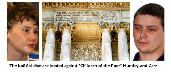Court. The logic behind the selection of the Old Bailey for this trial lies partly in its fearsome reputation over the years, at least since the present building was opened by King Edward VII in 1907. Some of the more notorious trials held at the Old Bailey this century include Doctor Crippen, the “Yorkshire Ripper” and the Kray Twins of East End fame. In the absence of any evidence against Huntley and Carr, the Home Office intended to use this fearsome Old Bailey reputation to artificially bolster its case. This is not in the spirit of a motto above the Old Bailey door that reads, “Defend the Children of the Poor and Punish The Wrongdoer”, but the Home Office didn’t care about such niceties in this new age of synthetic terrorism. Entirely in accord with the spirit of the illegal American concentration camp at Guantanamo Bay, the Home Office was about to reverse the motto to “Protect the Wrongdoer and Punish the Children of the Poor”. You will now discover this for yourselves, by analyzing the frightening number of blatant legal deceptions by the Prosecution in Court Number One. On 5 November 2003, Crown Prosecutor Richard Latham QC, set the tone for the entire trial when he told the jury, "We understand from those representing Huntley it is unlikely to be disputed by Huntley that the girls went into his home shortly after 6.30pm that evening, that Huntley was the only other person there at the time and that they died within a short time of going inside his home” …."It was Huntley who took their bodies to the place where they were found.” The defence did not confirm this claim, and Huntley was not even in court to hear it, but the boot was already in with a vengeance. Over the two weeks that followed, this unsubstantiated claim by Latham would become the prosecution catechism, constantly repeated on television and printed in full by at least two [different] newspapers every day, until the British public had been saturated with Huntley’s apparent “confession”. But it was not a confession at all, was it? No, it was just a monstrous legal trick designed to get the media cheerleaders on side, and hopefully subdue the British public. |