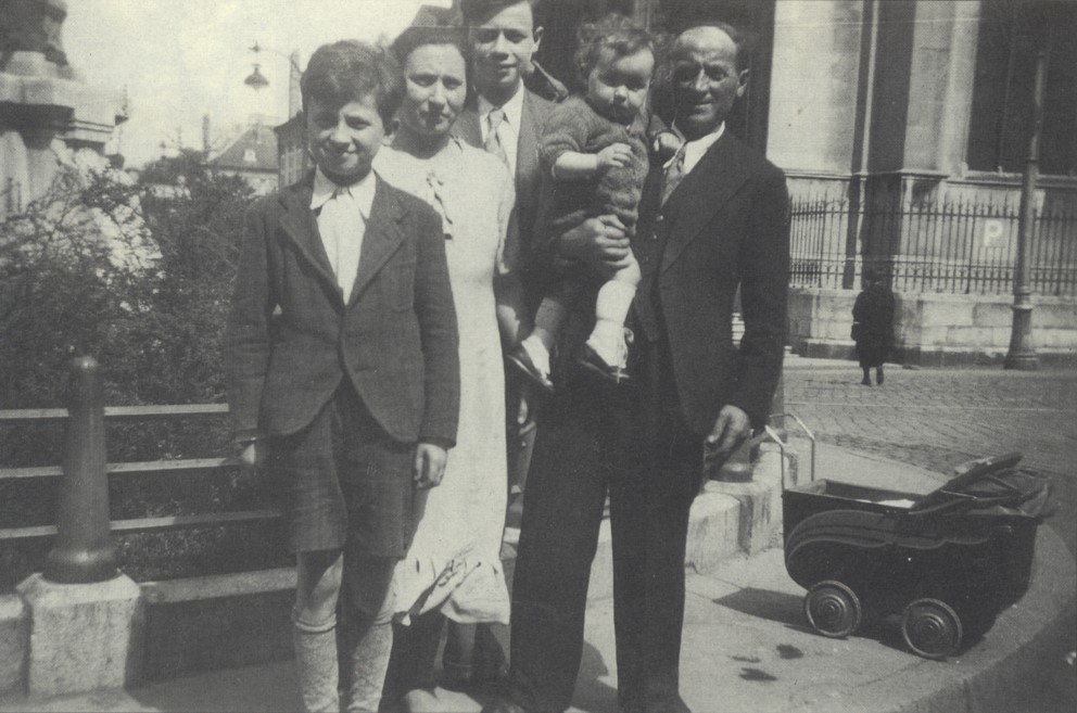sister, Estelle (in her father's arms), born in Nancy on February 1,