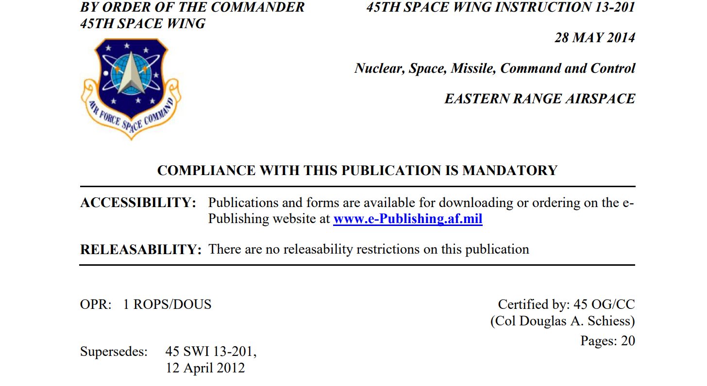 blank DOWNLOAD 45th Space Wing Instruction 13-201 – 28 May 2014 [20 Pages, 1.2MB]