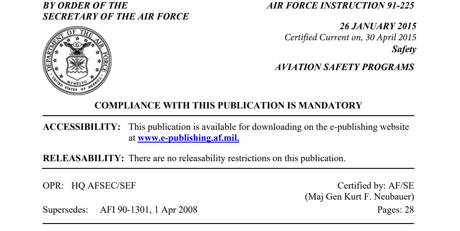 Aviation Safety Programs, Air Force Instruction 91-225 – 30 April 2015