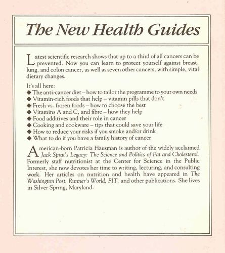 This book is based on mounting scientific research linking certain foods to reduced risk of cancer. On the basis of research now available, the author, along with other health professionals, believes that following the recommendations in this book should reduce the risk of developing certain forms of cancer. Of course, there can be no assurance given that following these recommendations will prevent cancer in any person.