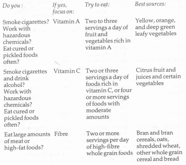 Of course it is best never to smoke or, failing that, to stop smoking if one has developed the habit. But research now shows that smokers who have diets rich in vitamin A are less likely to develop lung cancer than smokers who do not. It appears that a diet high in vitamin A helps those who cannot part with their cigarettes. This does not mean that eating lots of fruit and vegetables makes smoking acceptable. But there is good evidence that these can help to protect smokers to some degree.