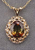Andalusite is a strongly pleochroic gem which is largely unknown by the general public. It ranges in color from pale yellowish brown to dark green to dark brown. It's trichroic nature, which shows shades of brown, green and reddish brown depending on the path of light through the crystal, can be enhanced by specific orientation and cut. This stone has sometimes been marketed as "poor man's Alexandrite", but it is not a color change stone. The distinction being that pleochroism is seeing different colors at different viewing angles regardless of light source, whereas the color change phenomenon is seeing a change in hue due to change in light source, regardless of crystal direction.