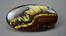 As the gem forms it is generally a blue-grey-green color, but when subjected to oxidizing conditions the iron in the crystals turns gold. Such conditions are common geologically, making the golden form much more prevalent than the blue. Enhancement by man has created "super-oxidized" pieces which are orangey red, and there are some garishly dyed pieces on the market as well. Closely related gems are tiger iron, which is a combination of jasper and tiger'seye, and Pietersite, which is a brecciated tiger'seye and/or hawk'seye.